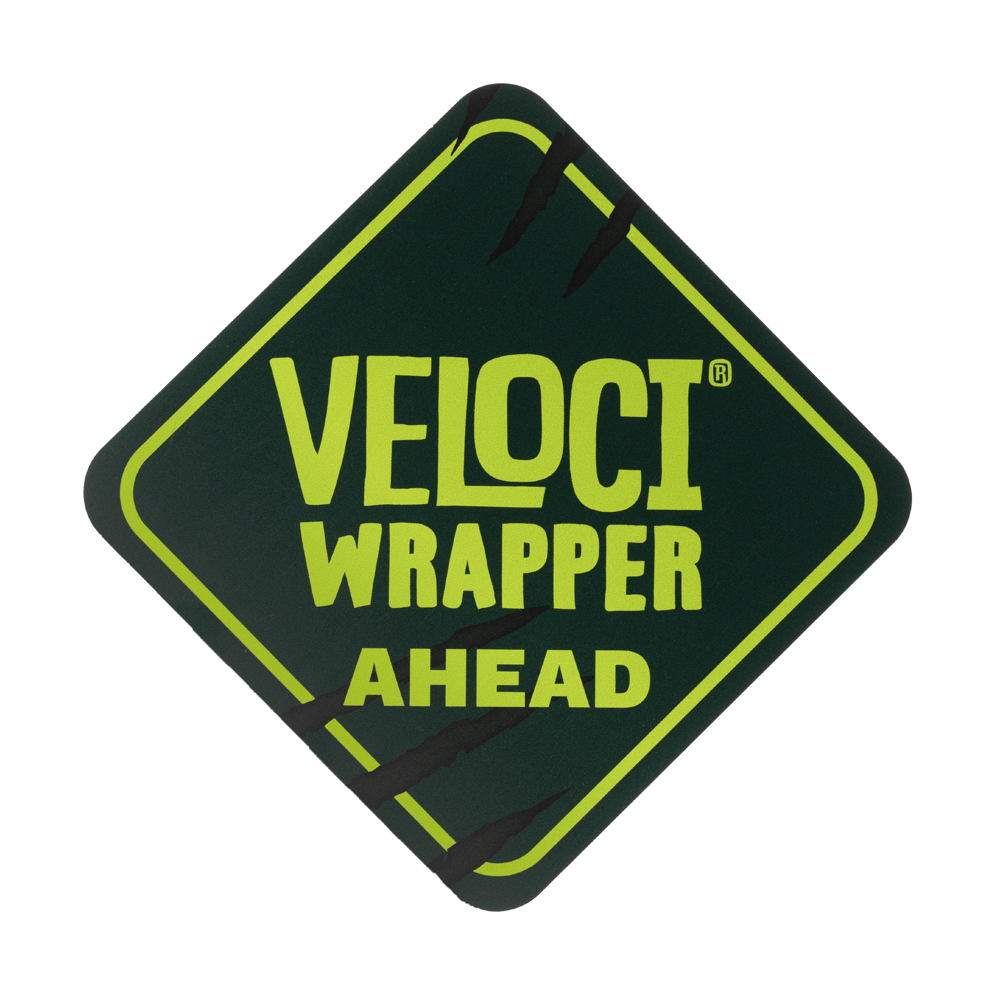 Green background and yellow text Construction Sign "Velociwrapper Ahead"